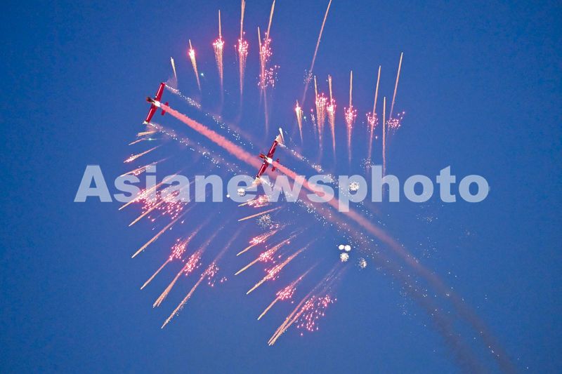 2024年11月2日,俄罗斯首航特技表演队进行烟花表演点亮南昌的夜空。