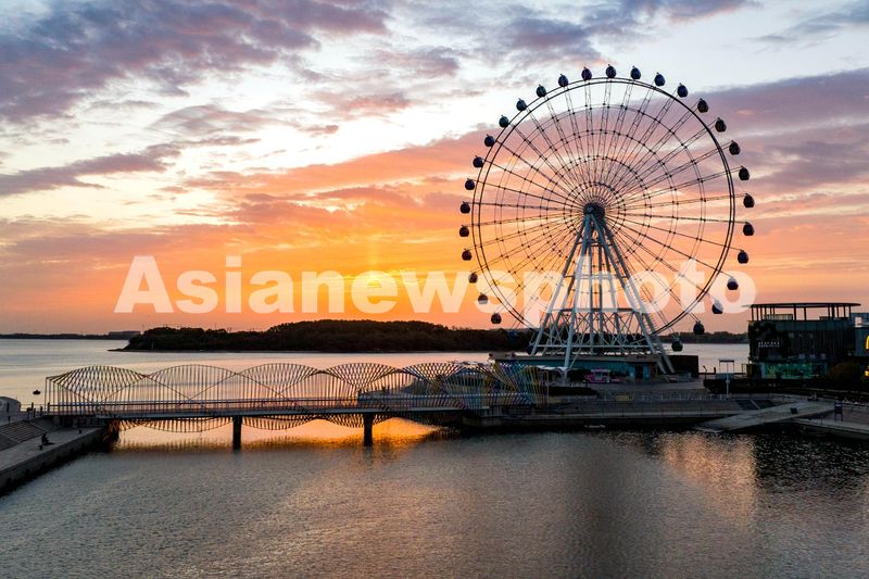 2024年11月4日,山东青岛西海岸新区唐岛湾畔的彩虹桥七彩斑斓,在深秋时节宛如凌波腾起的彩虹,靓丽缤纷。