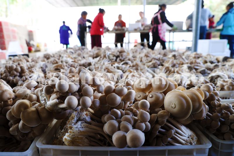 图片说明:2024年11月3日,村民在重庆市黔江区水田乡龙桥村鹿茸菇生产基地分拣、整理鹿茸菇。