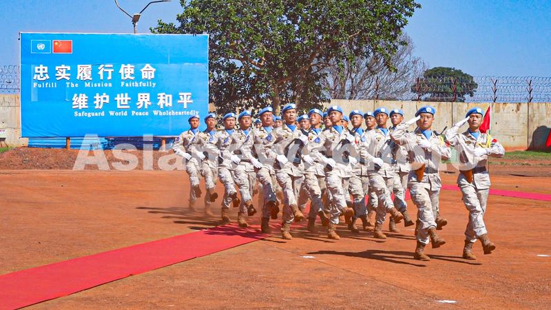 图片说明:2024年10月29日,中国第14批赴南苏丹(瓦乌)维和官兵接受检阅。