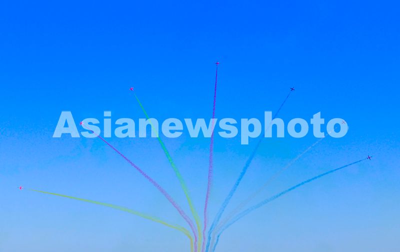 2024年11月2日,“红鹰”飞行表演队表演惊艳的多机空中开花特技。