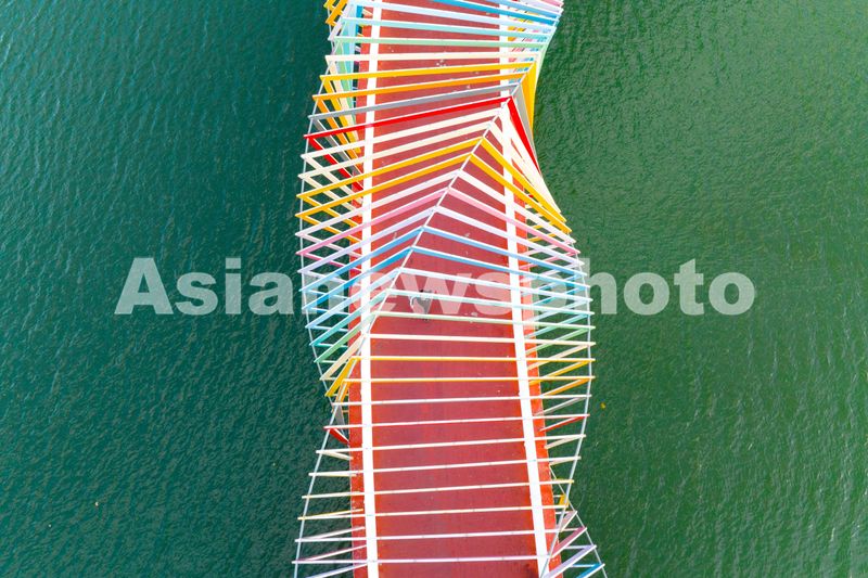 2024年11月4日,山东青岛西海岸新区唐岛湾畔的彩虹桥七彩斑斓,在深秋时节宛如凌波腾起的彩虹,靓丽缤纷。