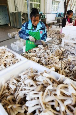 重庆黔江:工厂化生产鹿茸菇助增收 查看组图