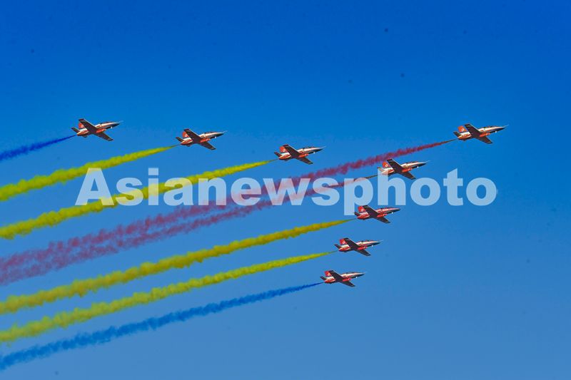 2024年11月2日,“红鹰”飞行表演队以彩烟编队方式特技飞行表演,充分展现飞行员的精湛技术。