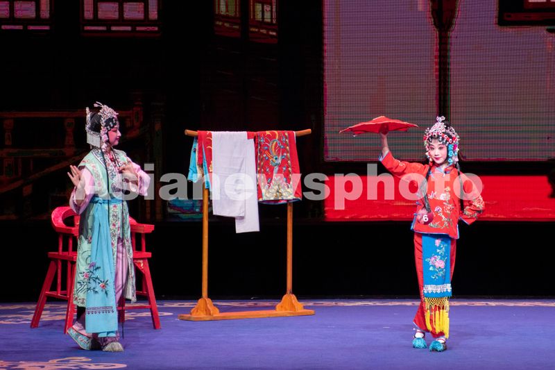 2024年11月4日,浙江省金华市中国婺剧院舞台上,来自全省各地的婺剧戏迷在表演婺剧选段节目。