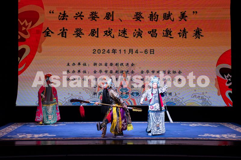 2024年11月4日,浙江省金华市中国婺剧院舞台上,来自全省各地的婺剧戏迷在表演婺剧选段节目。