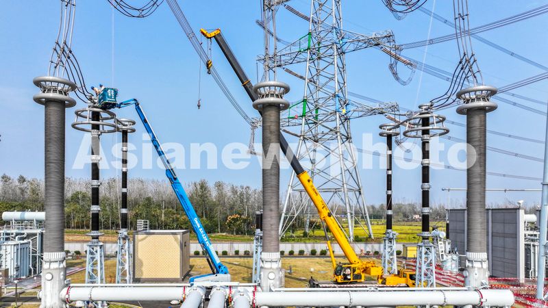 2024年11月4日,在特高压1000千伏盱眙变电站检修现场,江苏送变电有限公司检修人员正在对设备进行检修作业,及时消除电网安全隐患,提高设备健康水平,确保迎峰度冬期间电网安全供电,为长三角地区经济社会发展提供坚强能源保障。