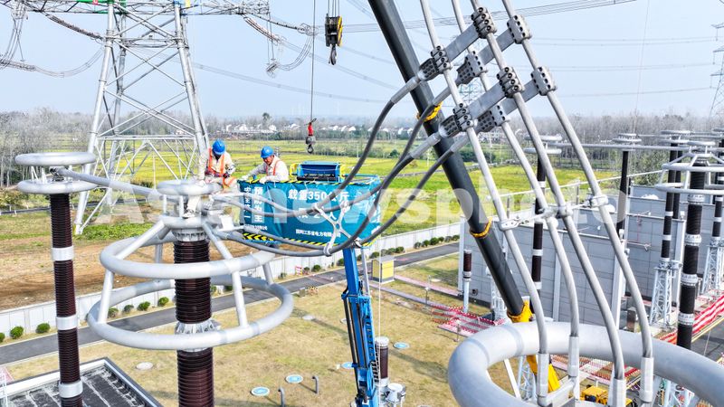 2024年11月4日,在特高压1000千伏盱眙变电站检修现场,江苏送变电有限公司检修人员正在对设备进行检修作业,及时消除电网安全隐患,提高设备健康水平,确保迎峰度冬期间电网安全供电,为长三角地区经济社会发展提供坚强能源保障。