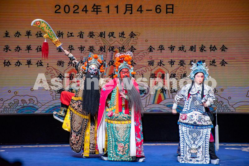 2024年11月4日,浙江省金华市中国婺剧院舞台上,来自全省各地的婺剧戏迷在表演婺剧选段节目。
