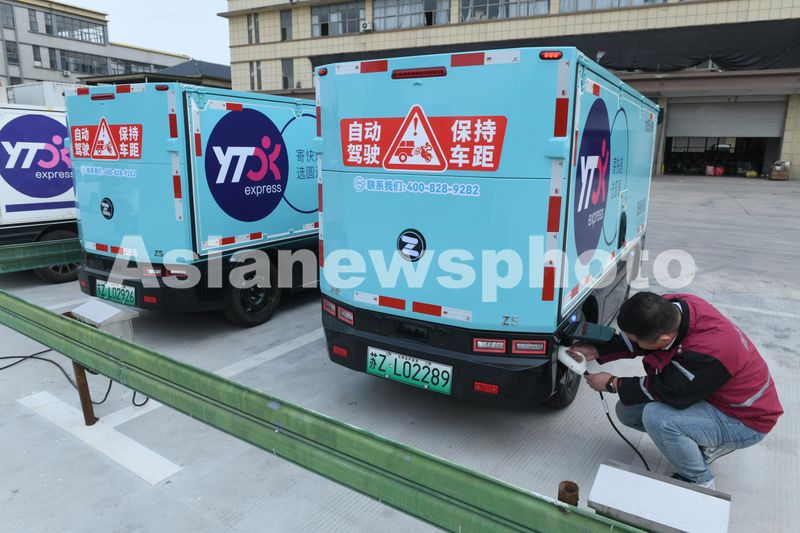 为迎战“双十一”快递量攀增,近日,圆通阜阳分公司新引进的两辆“冰川蓝”无人驾驶快递车即将上岗,在位于阜阳市颍东区皖北快递产业园的圆通阜阳分公司,工作人员打开手机,在APP上点击“启动”键,这两辆无人驾驶快递车随即启动。