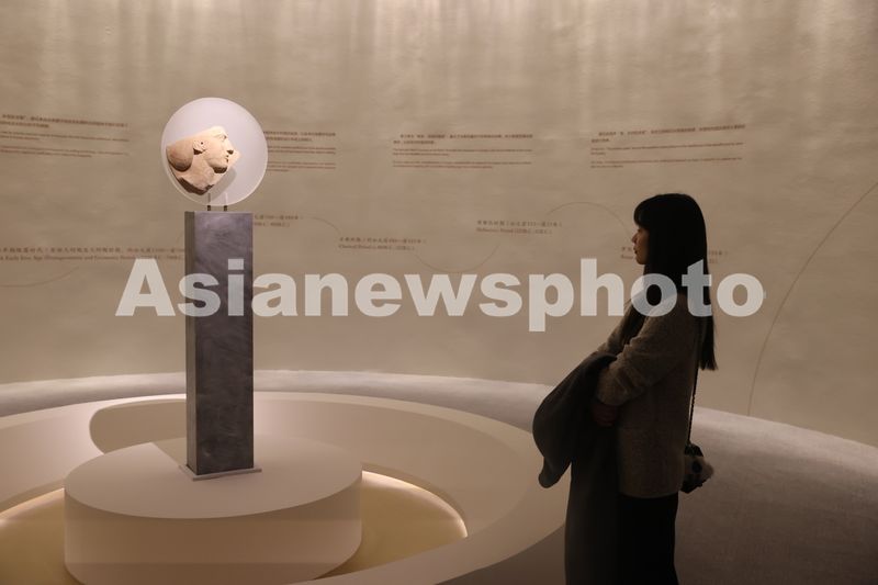 11月5日,观众观看大理石女性头像浮雕圆盘残片。