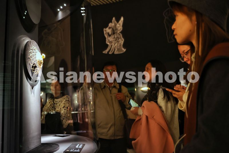 11月5日,观众参观展出的金链网头饰。