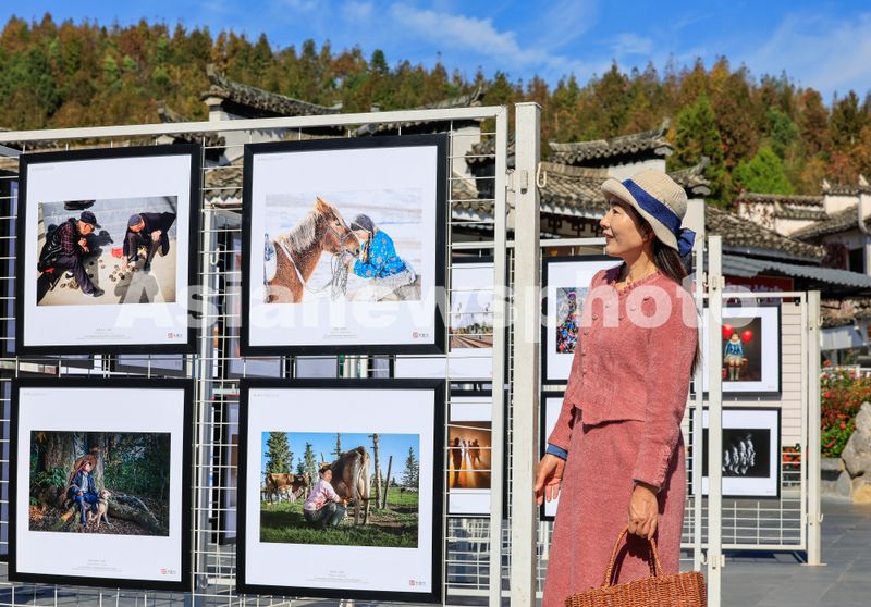 图片说明:2024年11月8日,观众在安徽省黄山市黟县西递古村落参观摄影展。