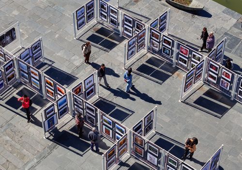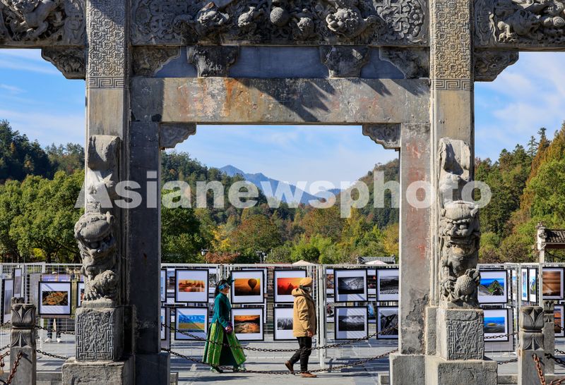 图片说明:2024年11月8日,观众在安徽省黄山市黟县西递古村落参观摄影展。