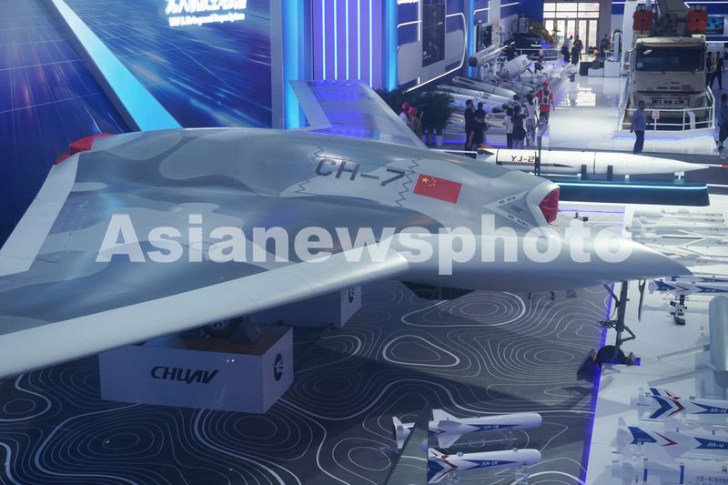 图片说明:2024年11月10日,在珠海航展中心拍摄到的彩虹-7隐身无人机。