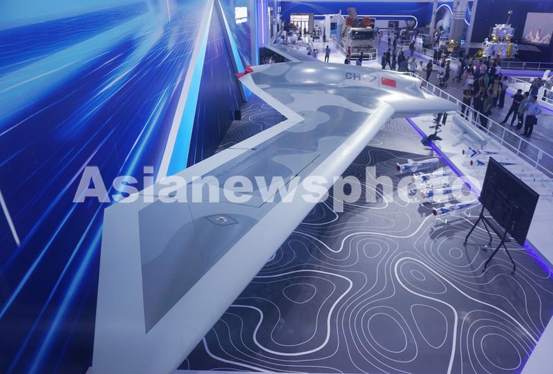 图片说明:2024年11月10日,在珠海航展中心拍摄到的彩虹-7隐身无人机。