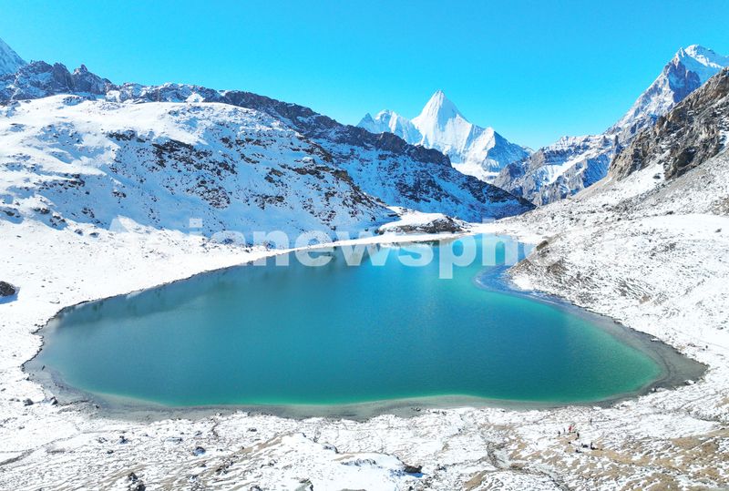图片说明:2024年11月12日,初冬时节的四川甘孜州稻城亚丁自然保护区“牛奶海”秀雅水色翠蓝迷人景观。
