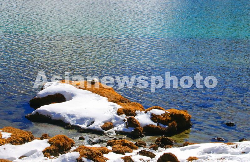 图片说明:2024年11月12日,初冬的四川甘孜州稻城亚丁景区水色翠蓝的“牛奶海”与湖边积雪相映成趣。