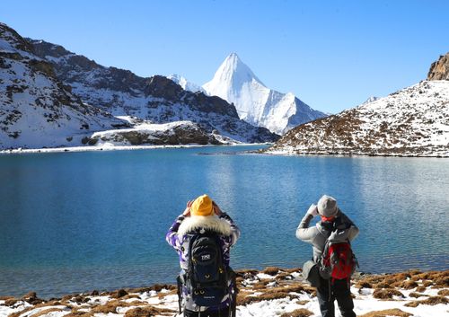 2024年11月12日,初冬时节的四川甘孜州阳光明媚,迎来久违的碧蓝晴空水晶天。位于四川省甘孜藏族自治州香格里拉镇“稻城亚丁自然保护区”内的著名景点牛奶海(亦称俄绒措),其湖水再现出独特的蓝色,清澈见底,周围环绕着洁白的雪山和冰川。秋去冬来的牛奶海,更显玲珑秀雅水色翠蓝迷人景色与大自然的宁静与壮美,吸引各地游客,尤其摄影者爱好前来打卡拍照。