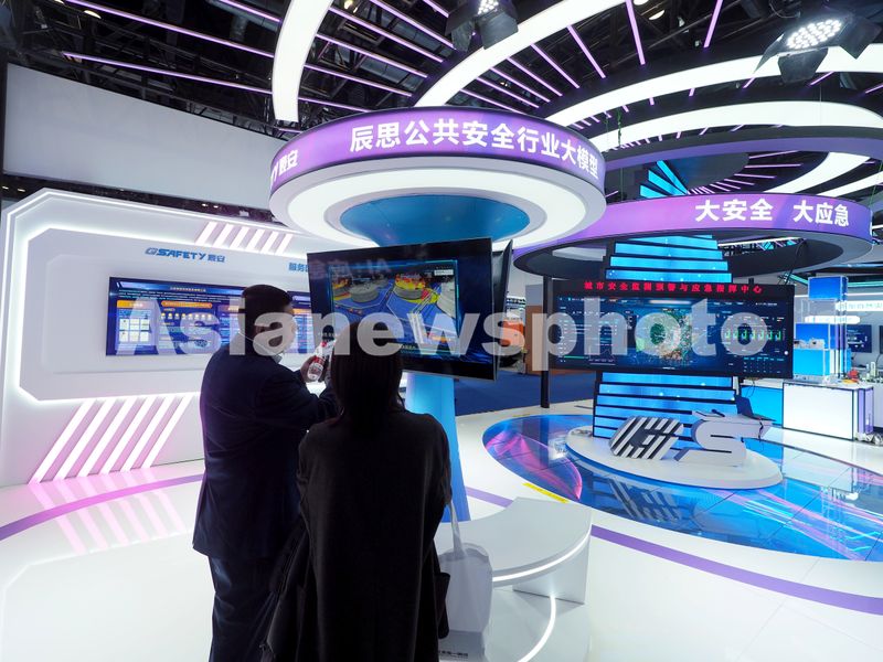 图片说明:2024年11月13日,北京国家会议中心,观众在2024中国国际应急管理展览会上参观“城市安全监测预警与应急指挥系统”。