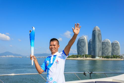 海南三亚:第十二届全国少数民族传统体育运动会火炬实地传递 查看组图