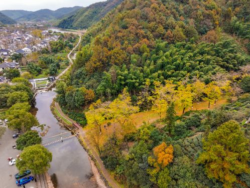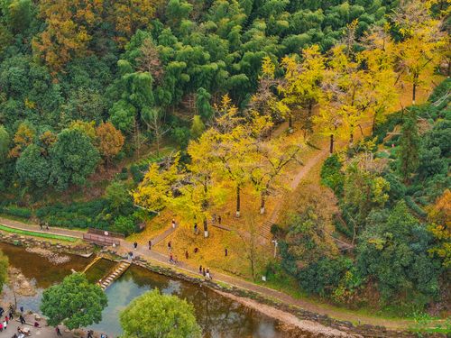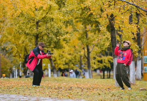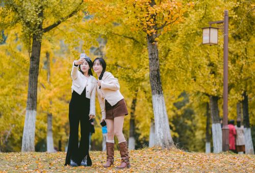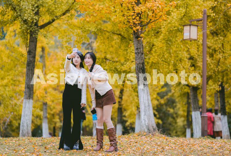 图片说明:2024年11月18日,浙江省湖州市长兴县小浦镇八都岕十里银杏长廊,游客在银杏树下拍照赏景。