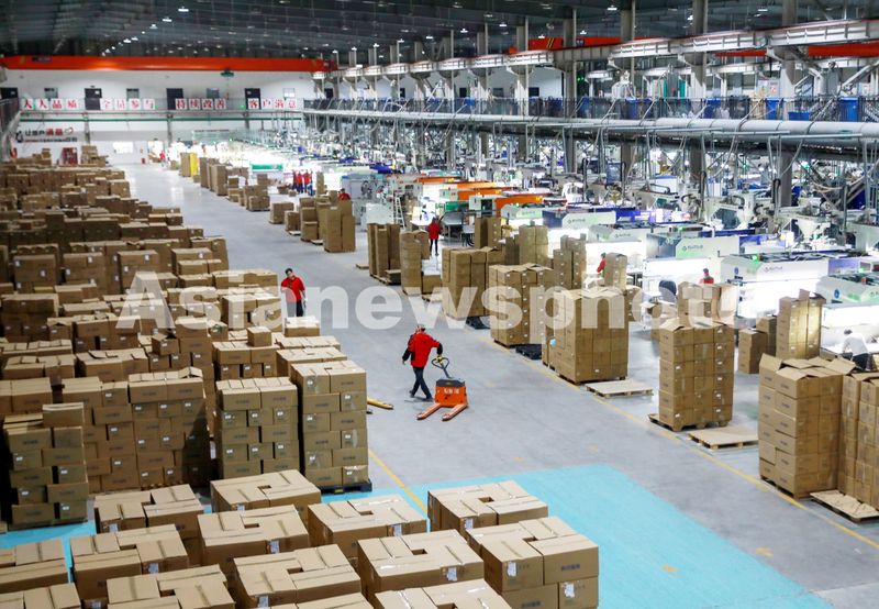 图片说明:2024年11月20日,四川省广安华蓥市华蓥山经开区瀚海精密电子厂的的员工,在智能车间转运包装好的产品,加速度冲刺全年目标。