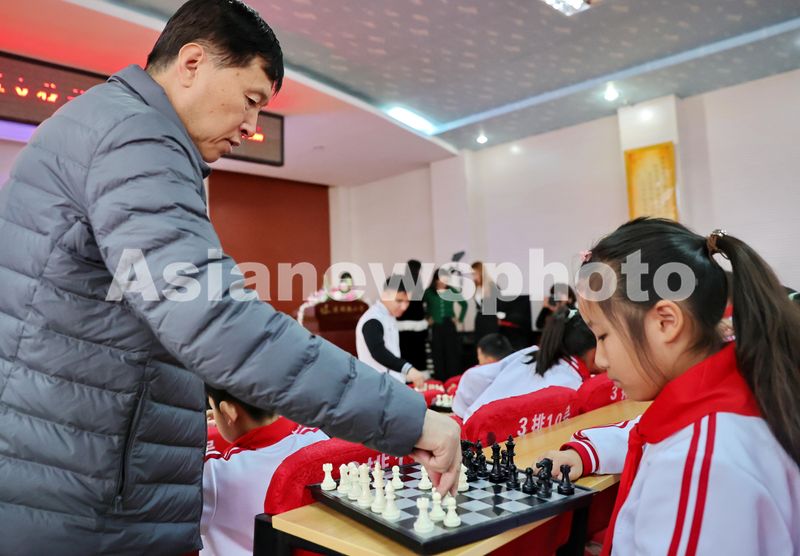 图片说明:2024年11月22日,国际象棋大师指导河北省秦皇岛市海港区建设路小学学生学习国际象棋。