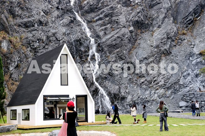 2024年11月24日,游客在浙江省湖州市德清县莫干山镇五四村一家矿坑咖啡店拍照打卡。