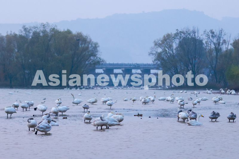 河南三门峡:大天鹅栖息湿地越冬 查看组图