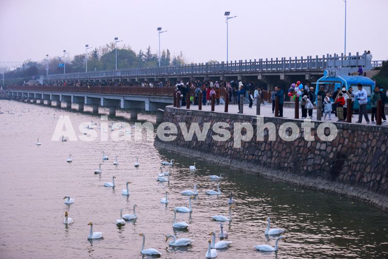 图片说明:2024年11月23日,游客在河南省三门峡市天鹅湖国家城市湿地公园观赏天鹅。