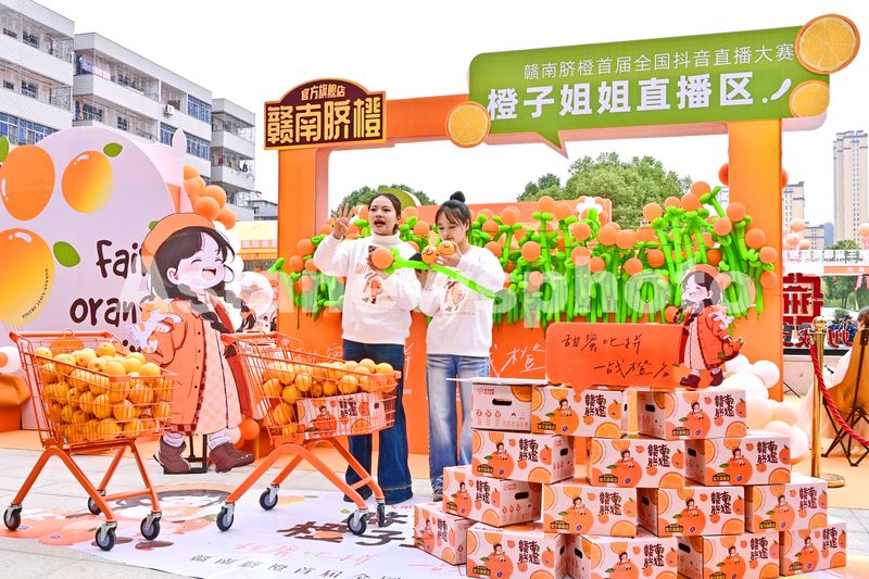 图片说明:2024年11月23日,江西省赣州市宁都县,第三届赣南脐橙国际博览会直播专场火热开播。