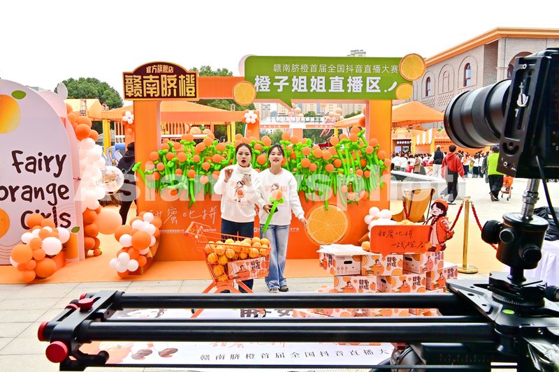 图片说明:2024年11月23日,江西省赣州市宁都县,第三届赣南脐橙国际博览会直播专场火热开播。