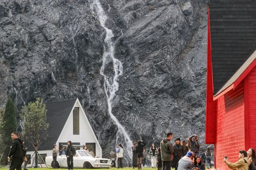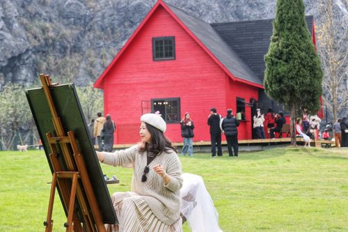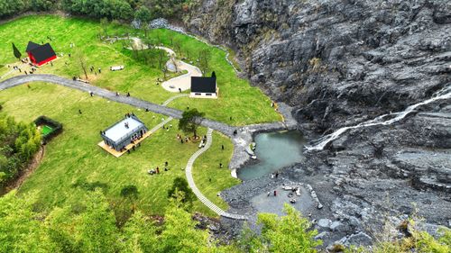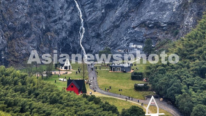2024年11月24日,游客在浙江省湖州市德清县莫干山镇五四村一家矿坑咖啡店拍照打卡。近年来,五四村牢固树立和践行“绿水青山就是金山银山”理念,陆续关停矿山企业,积极推进美丽乡村建设,推动闲置矿山资源文旅化场景改造、文旅业态培育和文旅产品开发,让昔日废矿变身乡村旅游网红地。