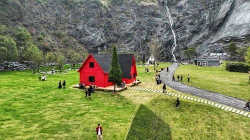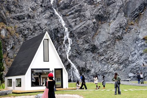 2024年11月24日,游客在浙江省湖州市德清县莫干山镇五四村一家矿坑咖啡店游玩。