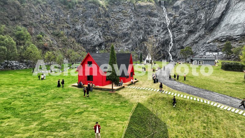 2024年11月24日,游客在浙江省湖州市德清县莫干山镇五四村一家矿坑咖啡店拍照打卡。近年来,五四村牢固树立和践行“绿水青山就是金山银山”理念,陆续关停矿山企业,积极推进美丽乡村建设,推动闲置矿山资源文旅化场景改造、文旅业态培育和文旅产品开发,让昔日废矿变身乡村旅游网红地。