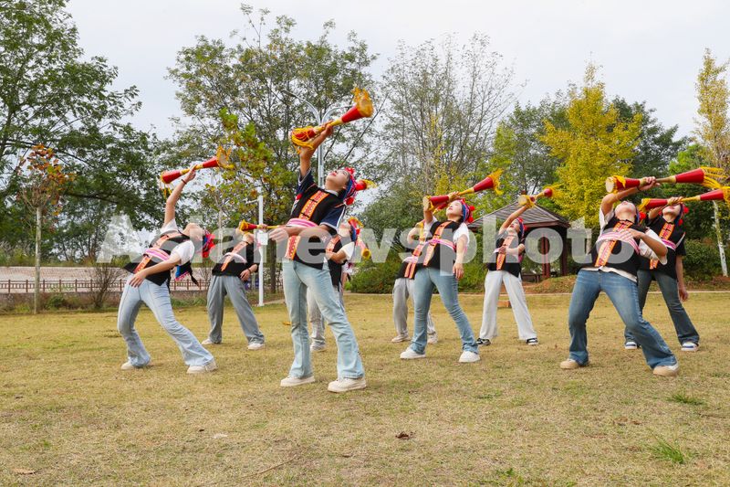 图片说明:2024年11月14日,湖南省永州市新田县门楼下瑶族乡民族学校的学生在练习瑶族长鼓舞。