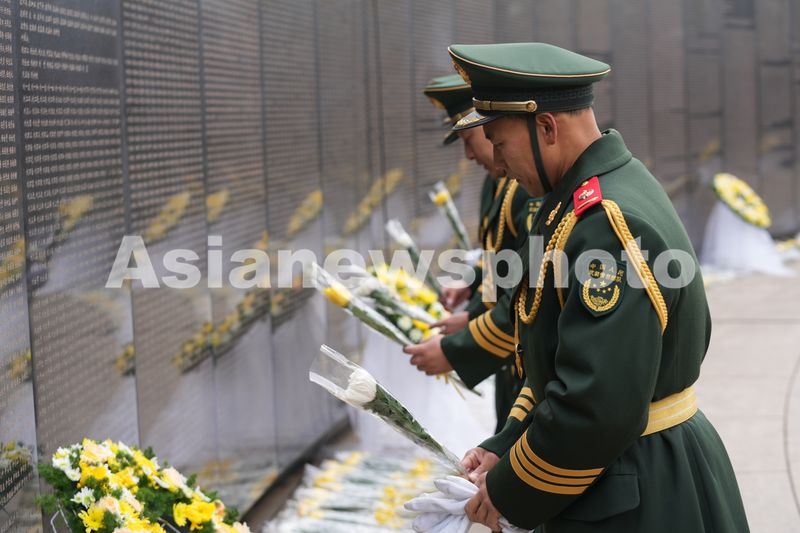 11月29日,部队官兵在沈阳抗美援朝烈士陵园烈士英名墙前献花致敬。