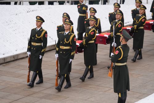 2024年11月29日,第十一批在韩中国人民志愿军烈士遗骸安葬仪式在沈阳抗美援朝烈士陵园举行。 (实习编辑:林昊飞)