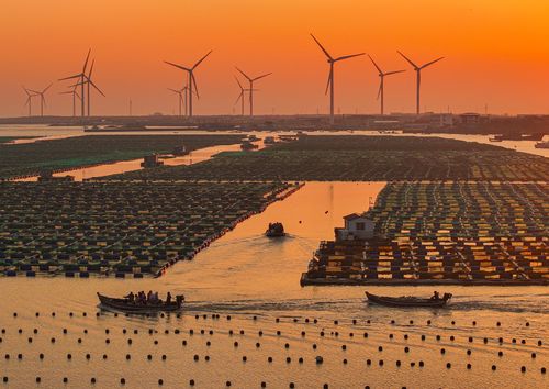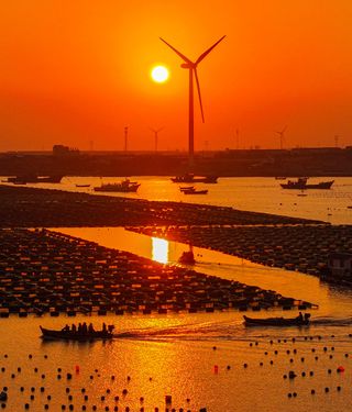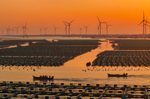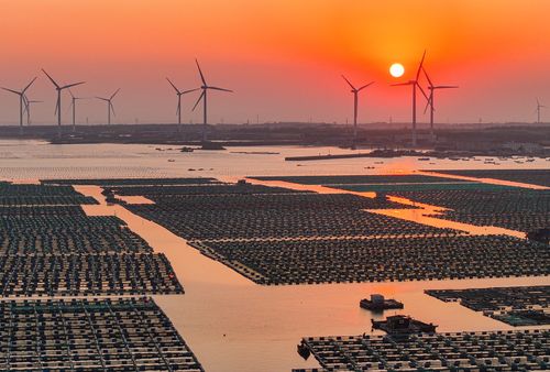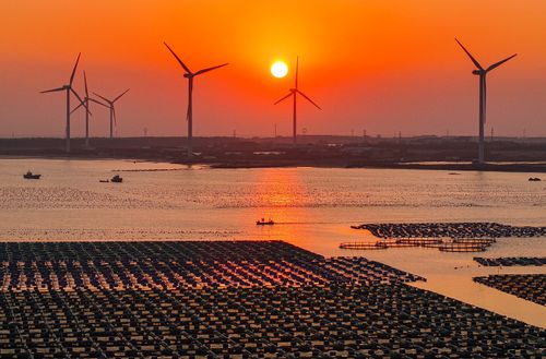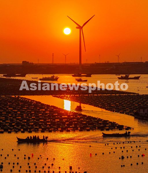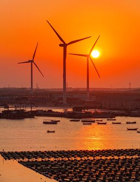 图片说明:2024年12月4日,在山东省荣成市石岛管理区桑沟湾风力发电场,风力发电机在运转工作。