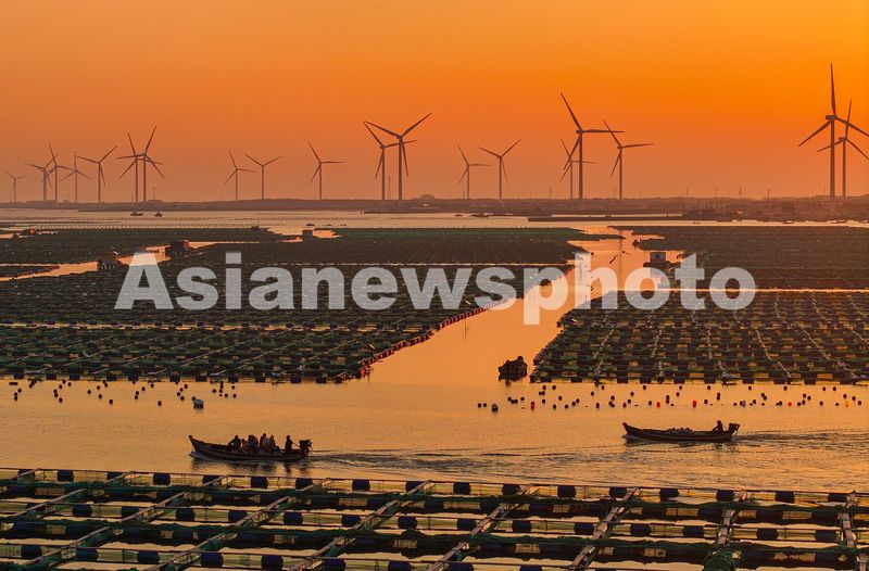图片说明:2024年12月4日,在山东省荣成市石岛管理区桑沟湾风力发电场,风力发电机在运转工作。