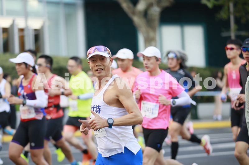 图片说明:2024年12月1日,选手在上海马拉松比赛中。
