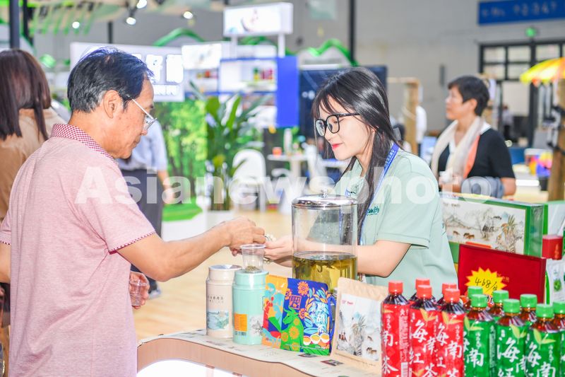 12月5日,在冬交会1号馆海南橡胶馆,嘉宾品尝海南绿茶。