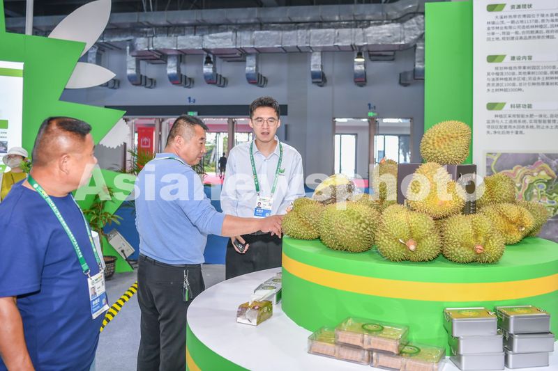 12月5日,在冬交会1号馆海南榴莲馆,嘉宾了解国产三亚榴莲。