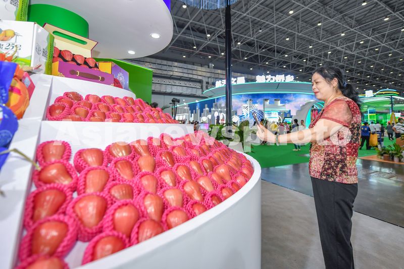 12月5日,在冬交会4号馆三亚馆,高品质三亚莲雾受到嘉宾关注。