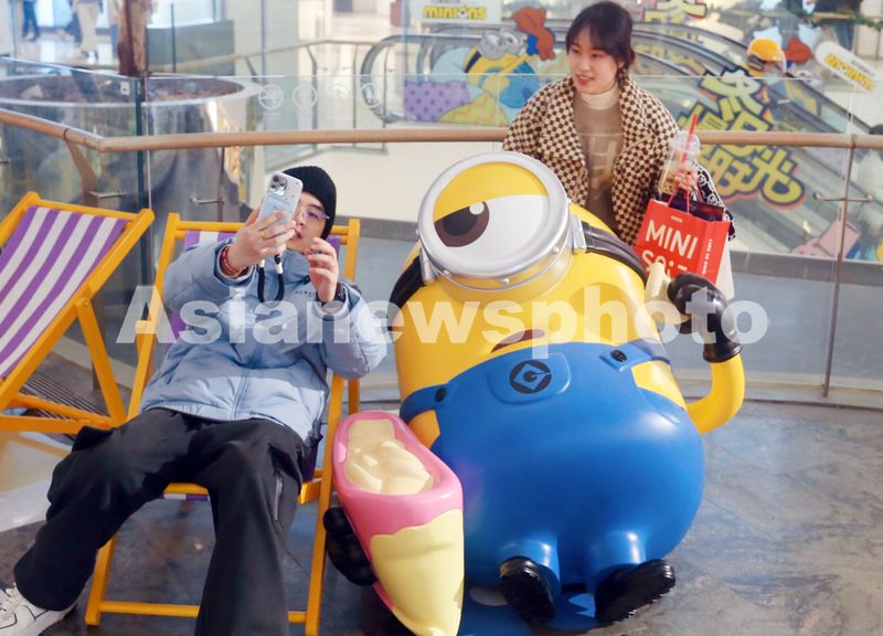 图片说明:2024年12月8日,上海,凯德集团商场首度携手好莱坞环球影业举办动画明星小黄人为主题的IP萌趣展迎新年,吸引众多消费者打卡。