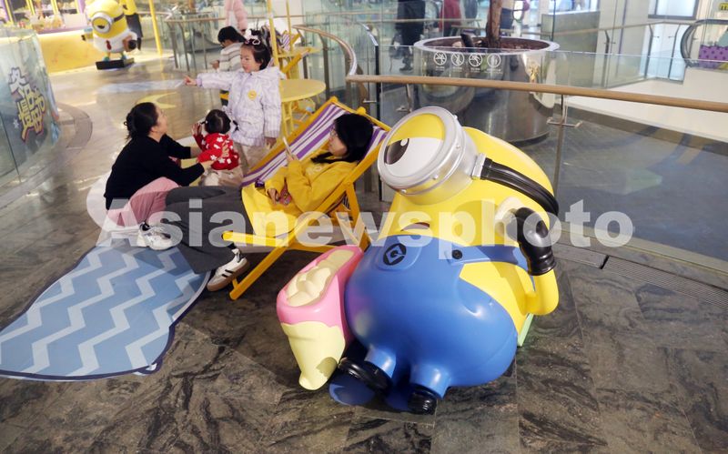 图片说明:2024年12月8日,上海,凯德集团商场首度携手好莱坞环球影业举办动画明星小黄人为主题的IP萌趣展迎新年,吸引众多消费者打卡。