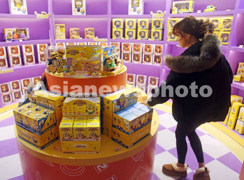 图片说明:2024年12月8日,上海,凯德集团商场举办好莱坞动画明星小黄人为主题的IP萌趣展迎新年,众多环球官方授权的正版周边商品迎合了二次元“谷子经济”热潮。