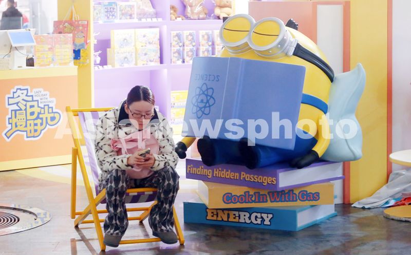 图片说明:2024年12月8日,上海,凯德集团商场首度携手好莱坞环球影业举办动画明星小黄人为主题的IP萌趣展迎新年,吸引众多消费者打卡。