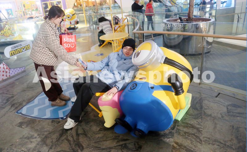 图片说明:2024年12月8日,上海,凯德集团商场首度携手好莱坞环球影业举办动画明星小黄人为主题的IP萌趣展迎新年,吸引众多消费者打卡。